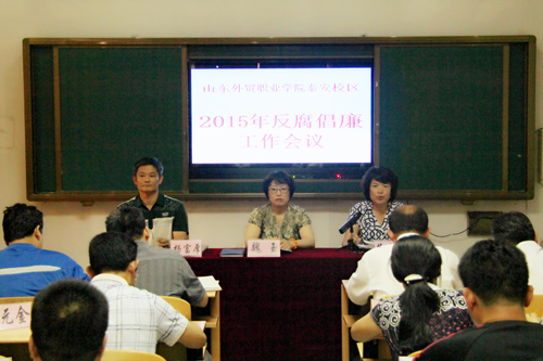2015年6月16日下午,校区隆重召开反腐倡廉工作大会。会议由中层以上干部、全体党员及入党积极份子参加,党委书记与班子成员、各分管领导与科室负责人签订了《廉政承诺书》。