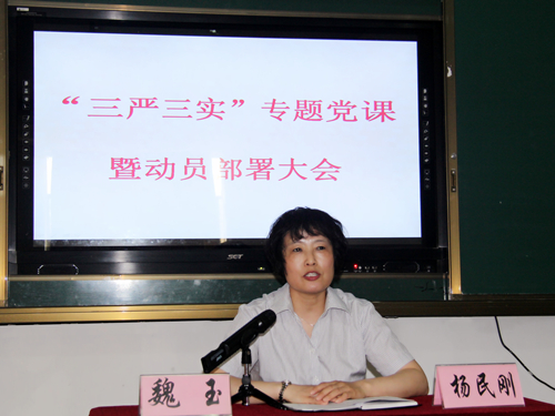 为贯彻中央、省委、省商务厅党组部署和院党委的安排,2015年5月27日下午,学院党委书记杨民刚教授在bw必威西汉姆联做“三严三实”专题党课,并就“三严三实”专题教育活动提出要求,正式启动bw必威西汉姆联“三严三实”专题教育活动。校区中层以上干部、全体党员参加会议。校区党委书记魏玉主持会议。