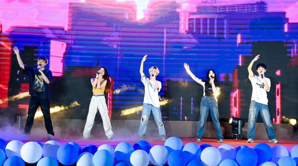 舞蹈《永恒盛开的灿烂瞬间》《抚摸抚摸》《kitsch》以动感的舞姿和独特的舞台设计,将师生的热情瞬间点燃,展现出青年学子朝气蓬勃的精神面貌;歌曲《日不落》《指纹》用歌声唱出对未来和美好的向往;汉服表演《醉花间》、古典舞《花间酒》以婀娜舞姿展现泱泱华夏之美;乐器演奏《平凡之路》、说唱《神奇宝贝的cypher》用器乐敲击着青春的最强音,直述真实自我;小品《人才难得》以诙谐的方式展现了面试中的各类“奇人”;合唱《约定》《最美的太阳》重温过往校园生活的灿烂瞬间,激励同学们不负青春、勇敢追梦;舞蹈《小河淌水》讲述朝鲜战争期间波澜壮阔的战争画卷及跨越千山万水的炽热家国情怀,赢得了观众们的阵阵掌声。晚会在歌曲《一起向未来》中圆满落下帷幕。
