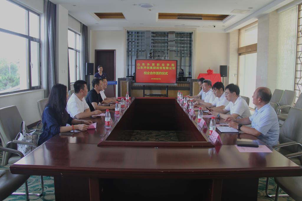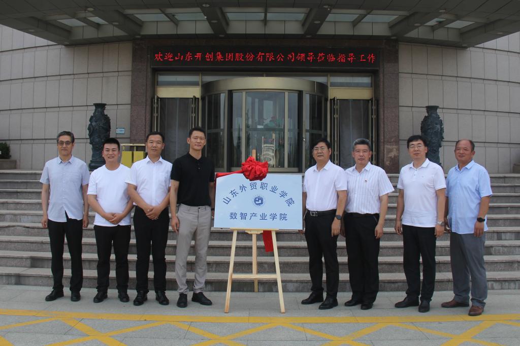 6月27日,我院与山东开创集团股份有限公司校企合作签约暨数智产业学院成立揭牌仪式在泰安举行。副院长高成、山东开创信息有限公司董事长房健和招生办公室、泰安教学部主要负责人参加活动。