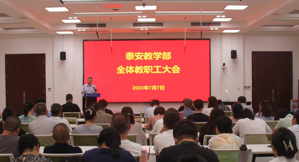 7月7日上午,在本学期即将结束,泰安老校区整体搬迁至新校区之际,泰安教学部在新校区智慧教室召开了全体教职工大会。教学部领导班子成员及全体教职工参加会议。