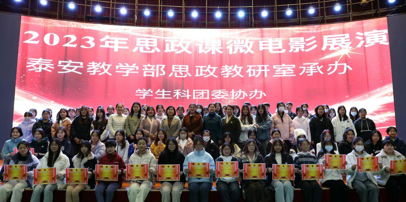 12月7日,为推动思政小课堂与社会大课堂相结合,拓展大学生参与思政课实践教学途径,思政教研室按照马克思主义学院统一部署,在泰山会堂举办了2023年思政课微电影决赛展演活动。泰安教学部主任位思清、纪委书记韦敏出席此次活动。