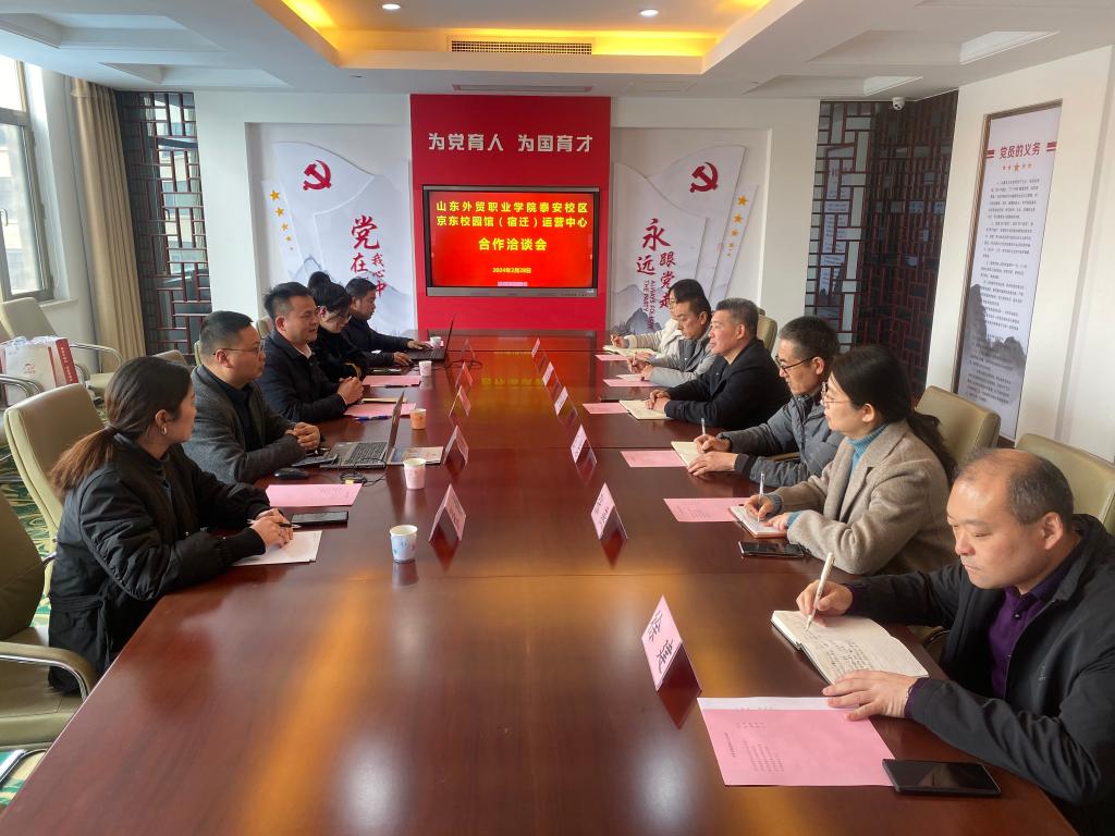 2月28日上午,京东校园馆(宿迁)运营中心政校企合作大区总经理许文兴一行6人来访,洽谈校企合作事宜。教学部党委书记白珣、副主任王岩,教务科、招生与就业办公室和专业教研室相关人员参加洽谈会。