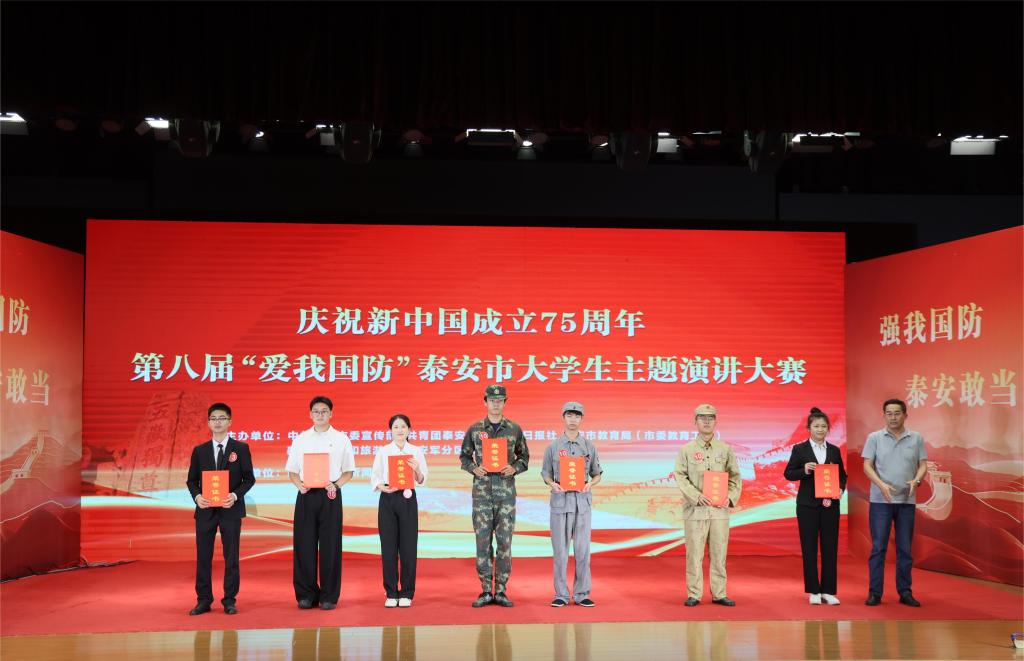 8月16日,第八届“爱我国防”泰安市大学生主题演讲大赛决赛在泰安新闻大厦报告厅举行,泰安教学部选派的两组选手均荣获二等奖。