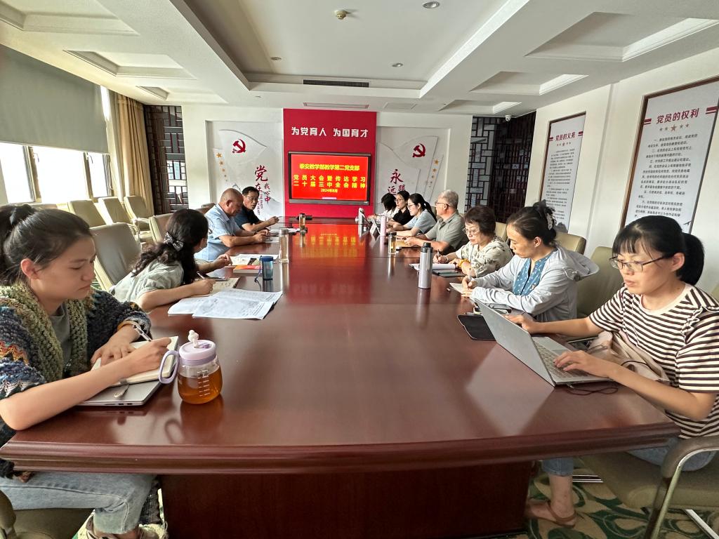 会上,各党支部组织学习了《中国共产党第二十届中央委员会第三次全体会议公报》,要求全体党员把学习宣传贯彻党的二十届三中全会精神作为当前和今后一个时期的首要政治任务,要深刻认识党的二十届三中全会的历史意义与时代价值,切实把思想和行动统一到党的二十届三中全会精神上来,对标对表,学深悟透,坚持真抓实干,强化贯彻落实,做到知行合一,凝聚奋斗力量,以实际行动践行全会精神,奋力谱写教学部发展新篇章。