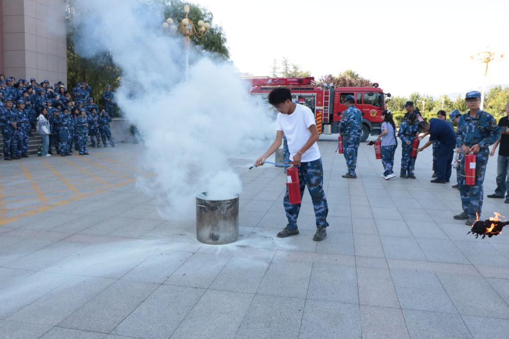 培训会上,岱岳区消防支队消防员系统介绍了消防基础知识、突发火情应急处置及疏散逃生要领、灭火器使用技能,并组织师生开展灭火实操演练。