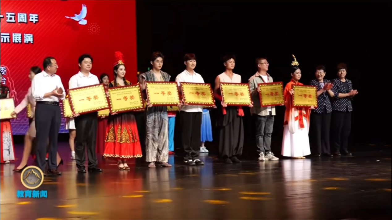 近日,“强国有我 青春向党”庆祝中华人民共和国成立75周年泰安高校大学生风采展示展演活动在泰山大剧院隆重举行。泰安教学部选送的歌伴舞《灯火里的中国》荣获一等奖。