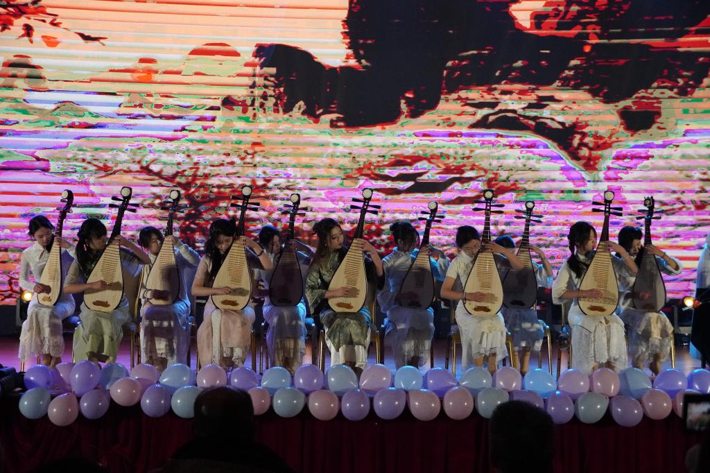 晚会分“山海汇聚.共筑梦”“逐梦追光.毅前行”“心向未来.乘风航”三个篇章,包涵歌曲、舞蹈、小品、话剧等19个不同形式、各具特色的节目。晚会在青春洋溢、活力四射的开场舞《Talk That Talk》中拉开序幕;歌伴舞《大鱼》《美丽的神话》唯美抒情,歌声与舞蹈交织出一幅生动画卷;舞蹈《舞动青春》《等你的回答》和走秀《芭比之夜》动感激情,靓丽多彩的表现瞬间点燃现场;歌曲《New Boy》《是妈妈是女儿》《情音荟萃》用音乐传递能量,唤醒观众心灵的共鸣;舞蹈《落》《青城山下白素贞》、乐器演奏《声声慢》、国风表演《只此青绿》以婉约优美的舞姿、悠扬的琵琶乐曲演绎中华传统文化之美;小品《史上第一大劫案》、话剧《白雪公主和七个小矮人》诙谐幽默,成功塑造了一系列鲜活角色;舞台剧《永远的格桑梅朵》引领观众穿越时空,深切感悟中国女兵的勇气与坚韧。晚会最后,全体演职人员齐跳《你要跳舞吧》,在舞蹈中绽放青春风采,尽展山外学子的活力与激情。