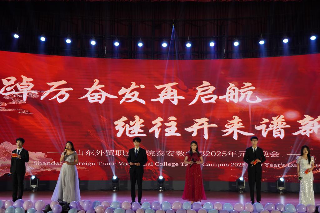 12月19日晚,泰安教学部在泰山会堂举办“踔厉奋发再起航 继往开来谱新章”2025年元旦晚会。泰安教学部班子成员、全体辅导员、教师代表以及在校生500余人到场观看演出。