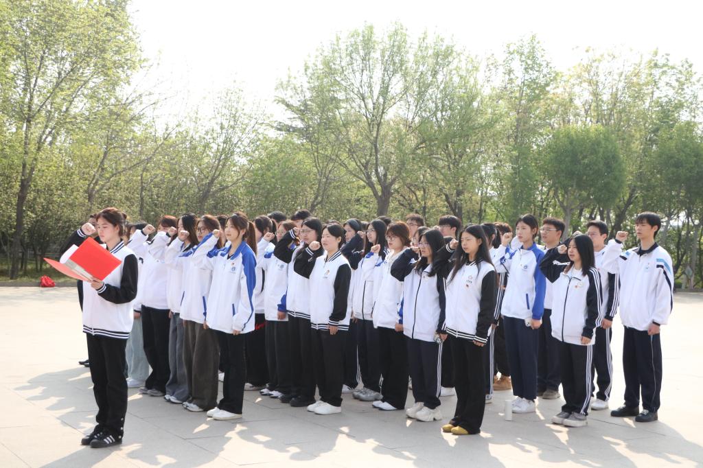 纪念碑前,全体师生肃立齐唱国歌,怀着崇敬的心情向革命烈士纪念碑敬献花篮,悼念默哀,表达对革命先烈的深切缅怀之情。随后,团员代表在团旗下重温入团誓词,誓言铮铮,表达了青年学子继承先烈遗志,勇担时代使命的坚定决心。
