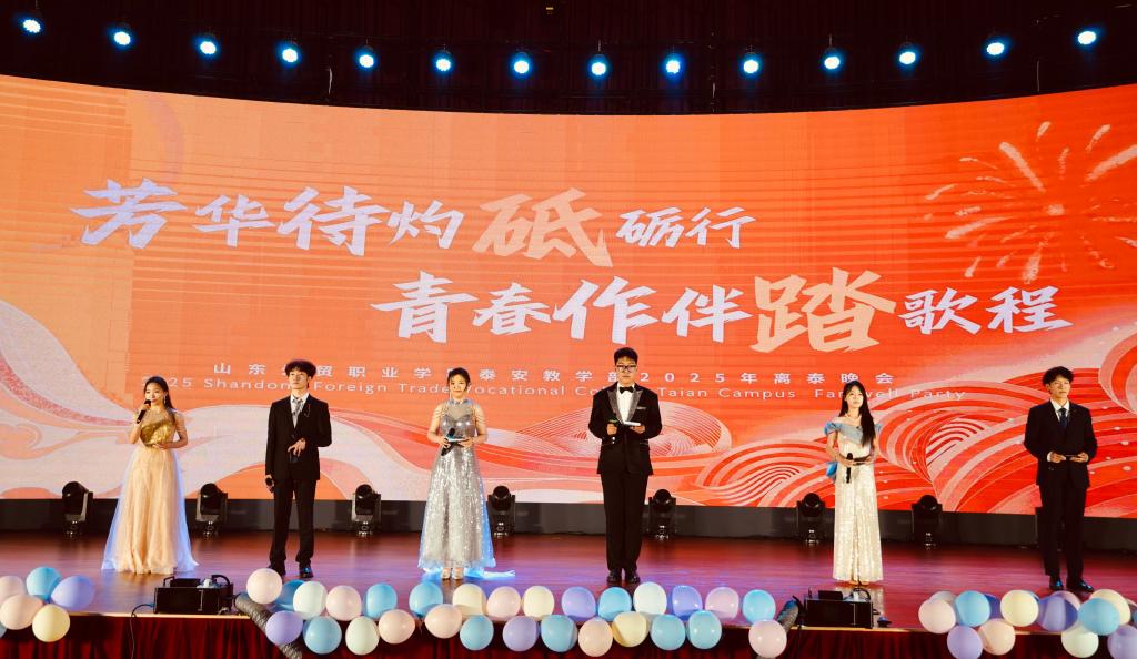 6月19日晚,泰安教学部在泰山会堂举办“芳华待灼砥砺行,青春作伴踏歌程”2025年离泰晚会。泰安教学部领导班子成员、全体辅导员、教师及学生代表600余人到场观看演出。
