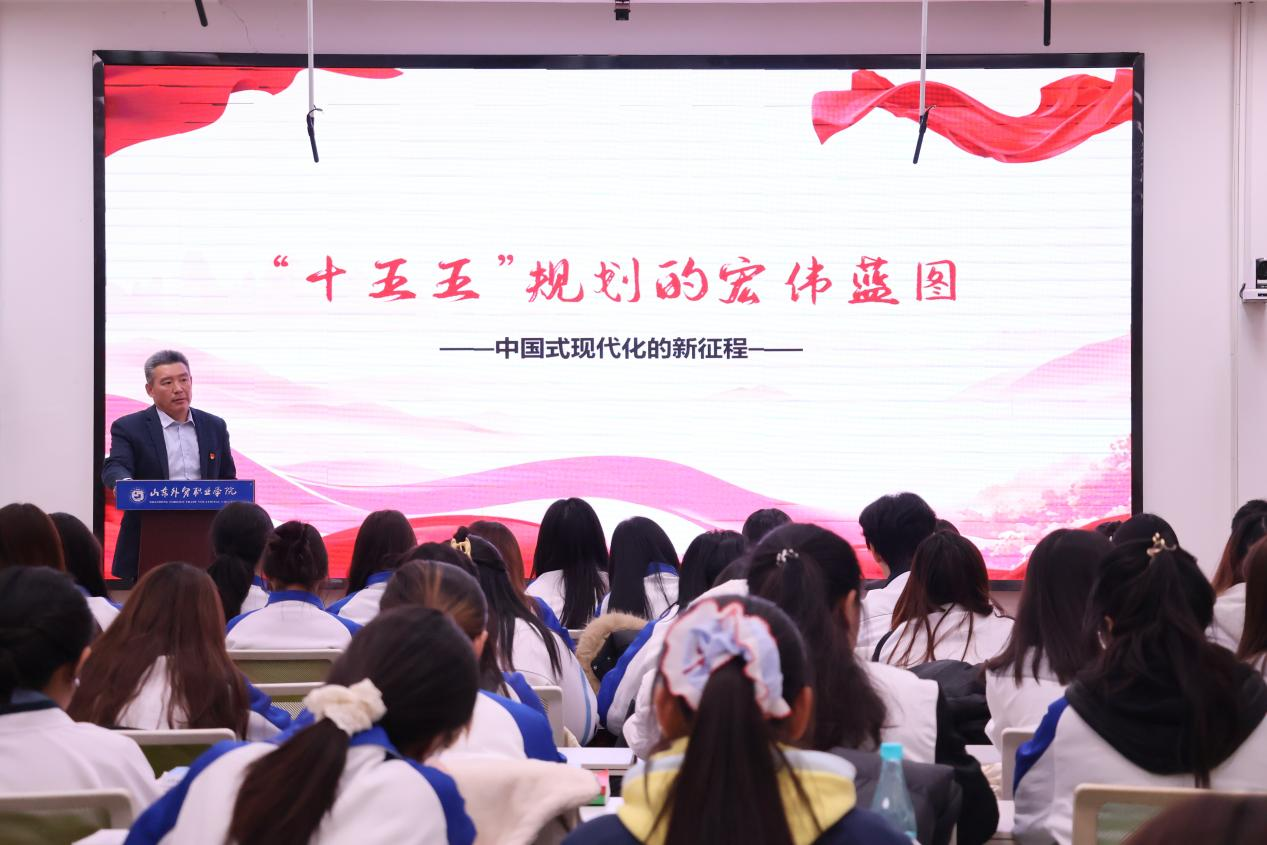 白珣围绕学习贯彻党的二十届四中全会精神,详细解读了全会审议通过的《中共中央关于制定国民经济和社会发展第十五个五年规划的建议》,全面阐述了“十四五”时期的重大成就和“十五五”时期的主要目标、遵循原则及重要部署,并对同学们学习领会全会精神,夯实专业基础,立足新时代发展,提出四点希望:一是坚定理想信念,把握时代方向;二是练就过硬本领,服务国家发展;三是拓展国际视野,讲好中国故事;四是投身强国实践,勇担时代重任。