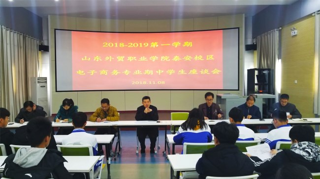 2018年11月08日,教务科组织在一号多媒体教室召开电子商务专业期中学生座谈会,相关专业教研室主任及各班学生代表参加了座谈,会议由校区管委会副主任白珣主持。