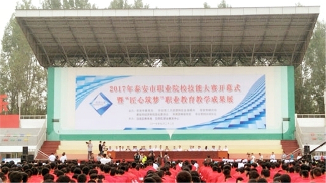 2017年泰安市职业院校技能大赛开幕式暨“匠心筑梦”职业教育教学成果展9月22日在泰安市岱岳区职教中心举行。泰安市教育局、人社局、财政局、岱岳区教育局等有关部门和职业院校的领导出席。我校区代表队由管委会副主任白珣领队,综合科、教务科、基础教研室等部门及部分老师、学生代表参加。