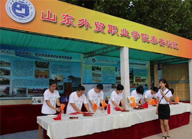 泰安市六所职业学校和驻泰安市六所高职院校参加此次活动。我校区也派出强有力阵容参加了此次技能大赛和成果展。校区成果展共分四个展区,第一展区主要展出各院校校企合作情况,我校区根据学院要求精选了三个校企合作单位即海丰控股、青岛如隆集团和新华锦集团进行情况介绍和展示。第二展区主要展出各院校教育发展成就及学生创客展演,我校区主要展出了电子商务专业的学生作品和旅游专业的七位同学现场表演口布折花。第三展区主要展出师生书法绘画和摄影作品,我校区精选了居红等教工们的13幅书法绘画作品和王岩等教工们的10幅摄影作品进行了展出。第四展区为舞台风采展演,参赛的各院校的学生带来了丰富多彩的节目,我校区也派出了由李松林等同学表演的民乐演奏《青花瓷》,受到好评。