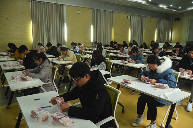 11月26日下午,校区会计教研室举办第五届点钞大赛。2017、2018级会计专业学生参加了比赛。