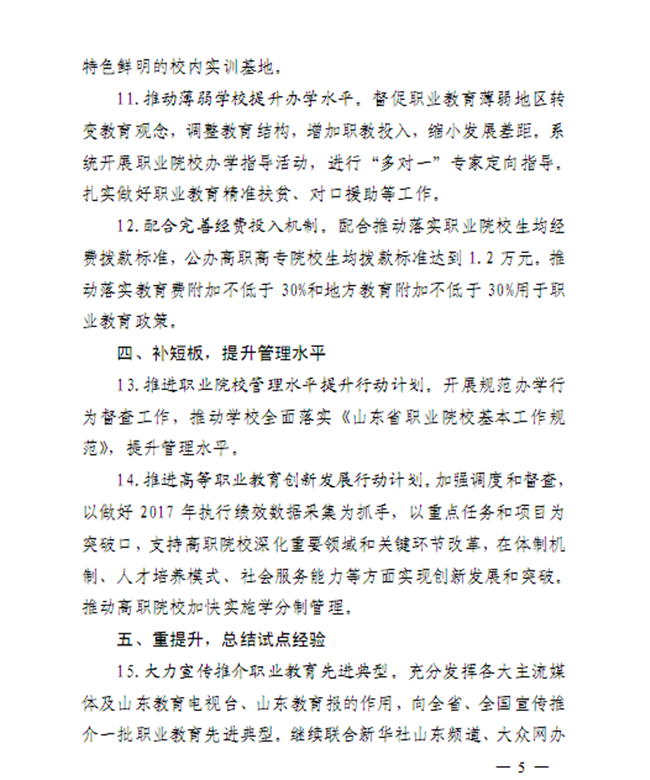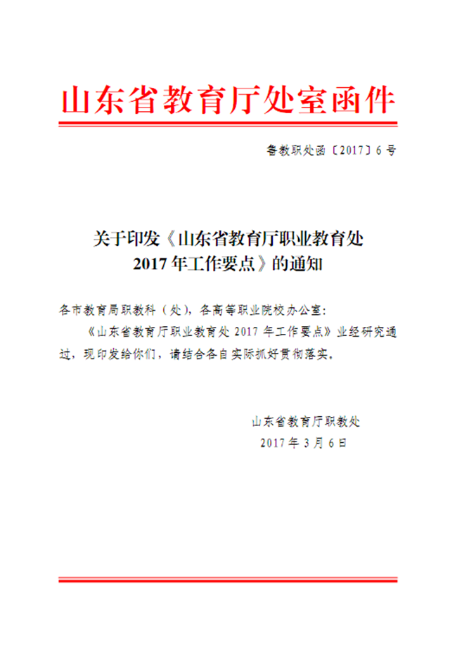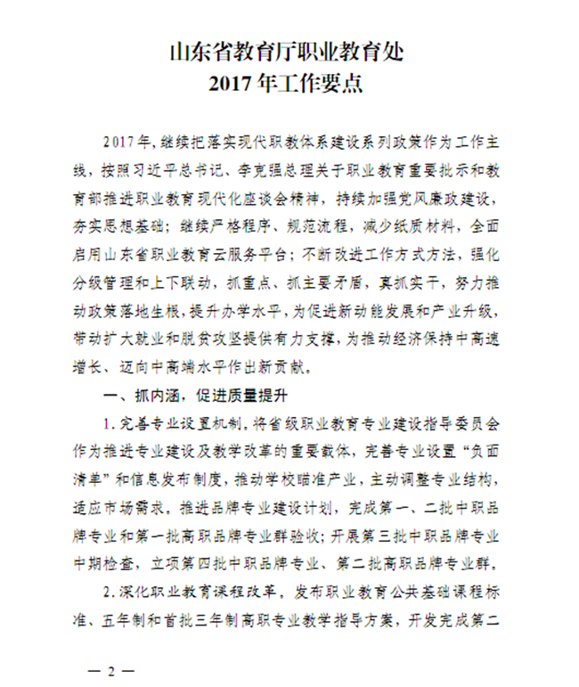 山东省教育厅职业教育处2017年工作要点