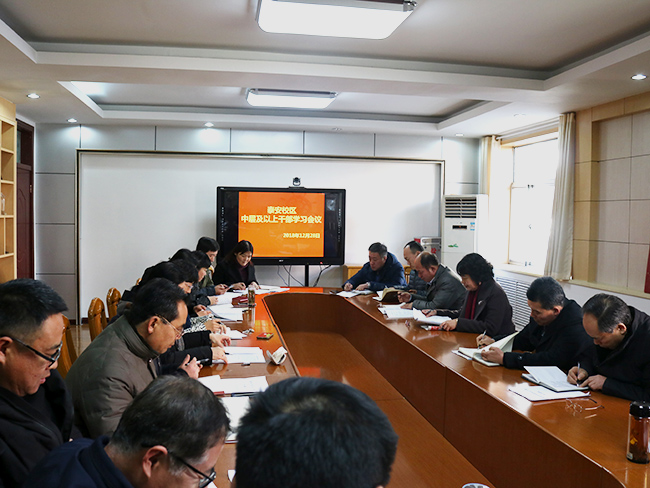 2018年12月28日下午,bw必威西汉姆联组织中层及以上干部学习会,校区管委会成员、科室负责人和支部书记参加了会议,会议由管委会副主任范维湘主持。