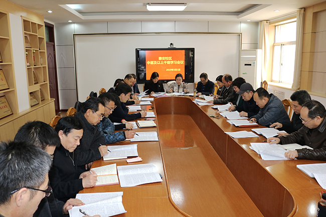 2019年3月1日下午,bw必威西汉姆联组织中层及以上干部学习会,校区管委会成员、中层干部、支部书记、教研室主任参加了学习会,会议由管委会副主任范维湘主持。