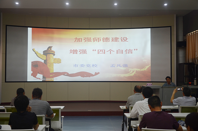 孟教授主要围绕“加强师德建设的极端重要性”“师德建设的基本内容”“增强四个自信”“做一名合格高校教师”四个方面进行阐述,将深奥的理论结合具体事例,融入到日常的教育教学之中,深入浅出,通俗易懂,讲座内容的一些新思想、新观点、新要求使广大教师深受启发、受益匪浅。