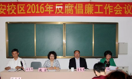 5月24日下午,校区组织召开反腐倡廉工作会议。参加会议的有校区中层以上领导干部及全体党员。学院纪委书记唐长臣、副书记韩淑君莅临校区指导工作并参加会议。