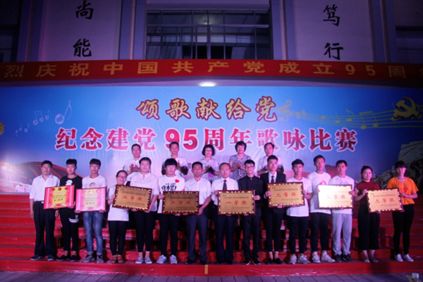 为庆祝建党95周年,歌颂中国共产党的伟大历程和丰功伟绩,激励师生团结、乐观、积极、拼搏的良好精神风貌,校区于6月30日晚举办了“颂歌献给党 再铸新辉煌”为主题的庆祝建党95周年歌咏比赛。活动由校区团委主办、党办协办,校区全体师生参加此次活动,教工三个党支部参加演出。