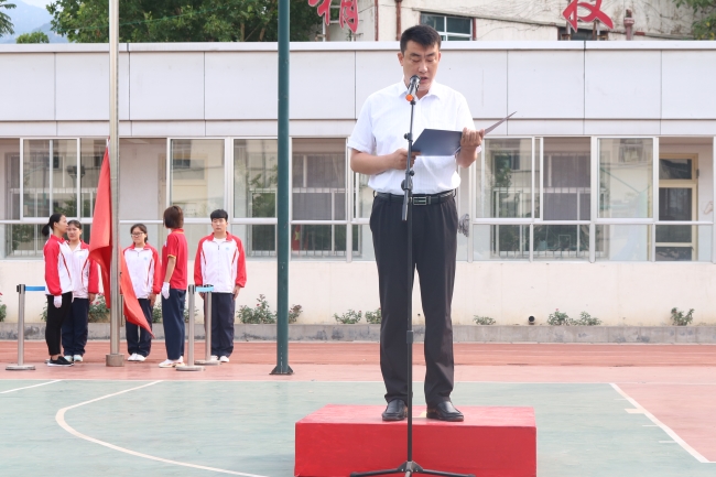 7月2日7时30分,校区举行七月份升旗活动,全体师生参加,团委书记王文勇主持。