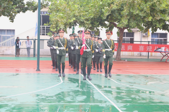 9月3日7时30分,校区举行新学期首次升旗活动,学生会、团总支两名优秀的学生干部代表与国旗护卫队共同承担升旗任务。学生科副科长刘惠主持。