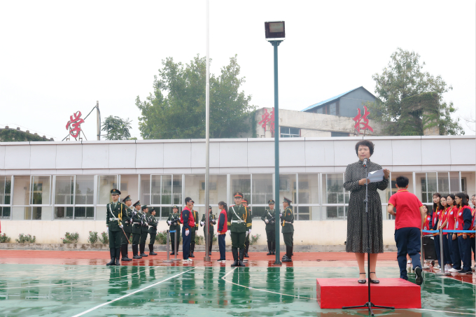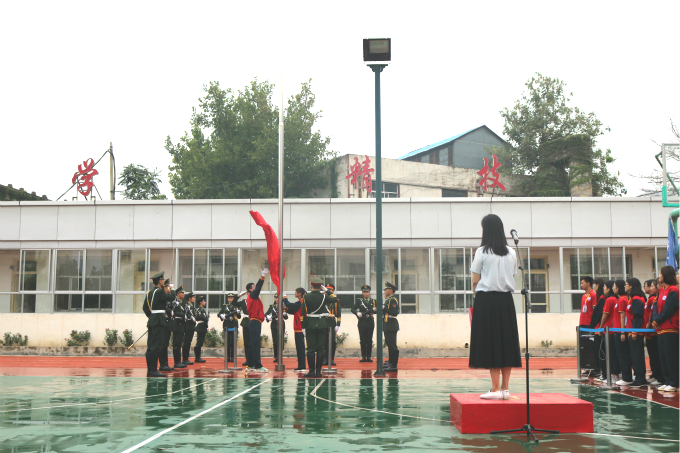 校区全体师生参加升旗活动。