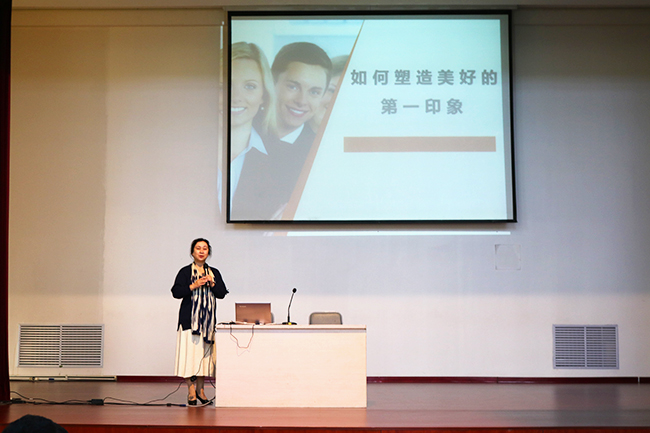 王韶燏以“如何塑造美好的第一印象”为主题,围绕着装礼仪、仪态礼仪、交谈礼仪等方面,从生活情景入手,通过生动有趣的案例和互动,细致讲述了在学习、生活和社交场合待人接物的礼仪与心得。她强调,要以期待他人对待自己的方式来对待身边的每一个人,要严于律己、尊重他人,积极塑造良好的品德修养和礼仪修养,努力做一个风度与学识同在、容貌与气质并存的优秀学生。