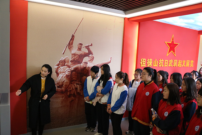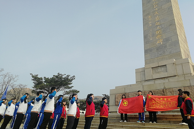 在徂徕山抗日武装起义纪念碑前,同学们庄严肃立,面向团旗,重温入团誓词,并一同瞻仰了纪念碑,表达对革命先烈的崇敬和缅怀之情。随后,同学们步行来到徂徕山抗日武装起义展览馆,在讲解员的讲解下,详细了解徂徕山抗日武装起义的革命历程和历史意义。徂徕山抗日武装起义,是抗日战争时期山东影响较大的一次起义,为建立山东抗日根据地奠定了坚实基础,为山东人民抗日战争积累了丰富经验,在中共党史和军史上,都具有极其重要的历史地位。聆听了革命先辈们可歌可泣的事迹和舍生忘死的壮举,同学们热血沸腾,心潮澎湃。