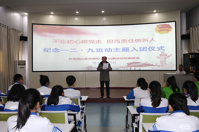 为进一步加强共青团队伍建设,落实从严治团要求,切实增强团员的先进性和光荣感,12月9日下午,团委在多功能报告厅举行2019-2020学年第一学期新团员入团仪式,团委负责人、团总支及各团支部成员、本期发展新团员共计130余人参加活动,校区党委委员、工会主席位思清出席活动并讲话。