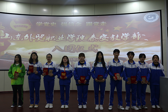 大会在庄严的国歌声中拉开帷幕。主持人说明了入团仪式的意义,宣读了本学期光荣入团的人员名单,各团支书为本支部新团员佩戴团徽,优秀团员郭晗睿带领新团员宣誓,新团员代表孟庆娇发言,表达了如愿加入团组织的喜悦之情和为团组织增光添彩的坚强决心。随后,表彰了2021年的优秀团员、优秀团干部和先进团支部,为他们颁发了荣誉证书和奖品。活动在团员们齐唱团歌《光荣啊,中国共青团》中结束。