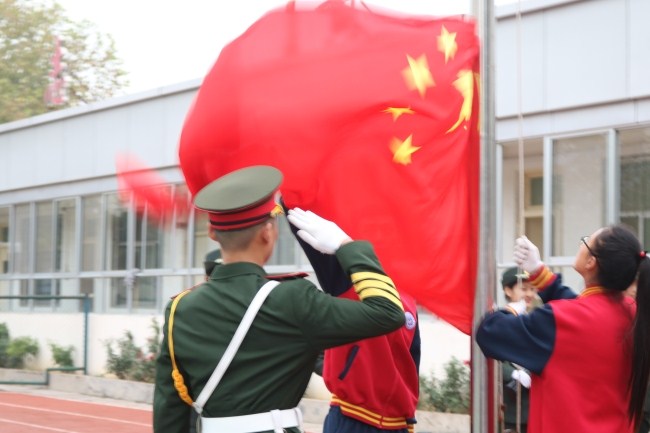 10月9日7时30分,校区举行十月份升旗活动,全体师生参加,团委副书记刘惠主持。
