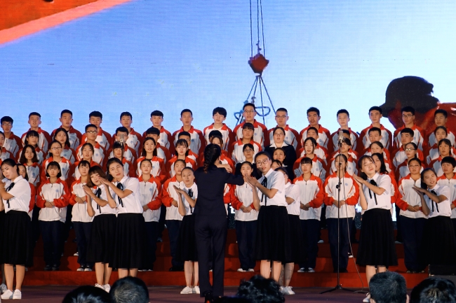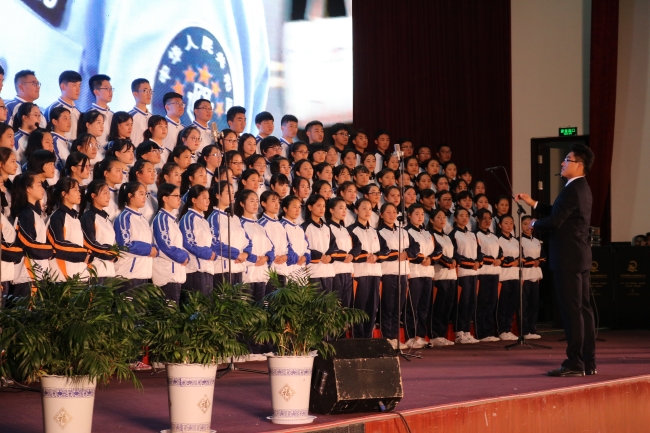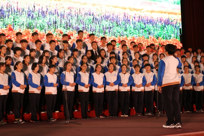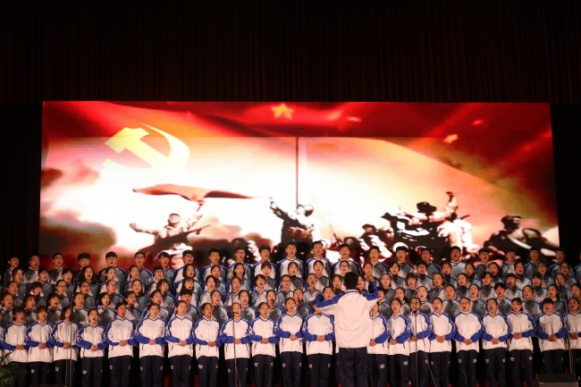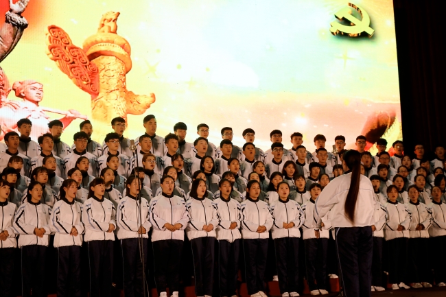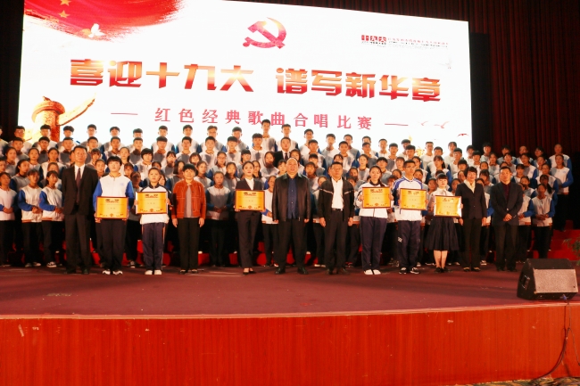 10月17日下午,在基地泰山会堂,校区与基地联合举办“喜迎十九大,谱写新华章”红色经典歌曲合唱比赛暨主题党日活动。学院纪委书记唐长臣、学院办公室主任李兴、纪委副书记韩淑君、基地教学部党总支部书记李军、校区管委会领导及全体在职党员、800余名学生参加活动。