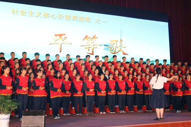 比赛共有六个队参赛,其中基地派出国际贸易系代表队、财会金融系代表队和商务外语系代表队,校区派出15级敬业队、16级平等队和17级民主队。六个参赛队纷纷为大家奉献了一个个精彩的表演节目,《法治歌》《敬业歌》《友善歌》《平等歌》《和谐歌》《民主歌》唱出了社会主义核心价值观的内容和时代气息,《歌唱祖国》《中国中国,鲜红的太阳永不落》《我们走在大路上》《保卫黄河》《让我们荡起双桨》唱出了党的丰功伟绩和对祖国的热爱。各个参赛队组织有序,精神饱满,学生们唱出了风采,唱响了梦想和希望。