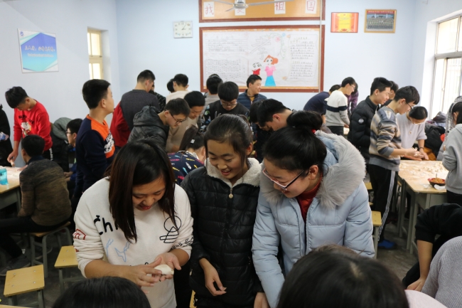 校区领导、任课老师和班主任也走进食堂或教室,参与包饺子活动,师生同乐,欢度冬至。“包饺子过冬至”作为校区的一项传统活动,受到了广大师生的热烈欢迎。
