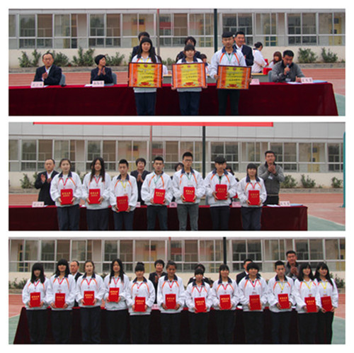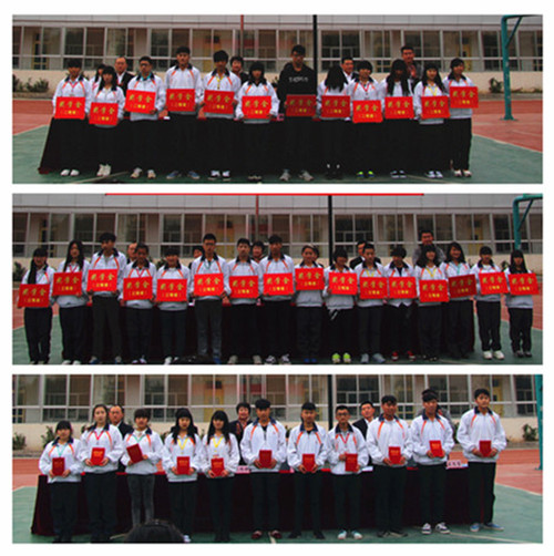 2014年10月29日,学校在操场召开2013-2014学年度第二学期表彰大会,对上学期优秀个人、先进集体和本学期单项奖学金获得者进行表彰。希望通过这样一次表彰会,总结经验,发扬成绩,弘扬正气,团结和动员全体同学以更加崭新的思想观念、更加饱满的精神状态,积极投入到今后的学习中去,做全面健康发展的好学生。