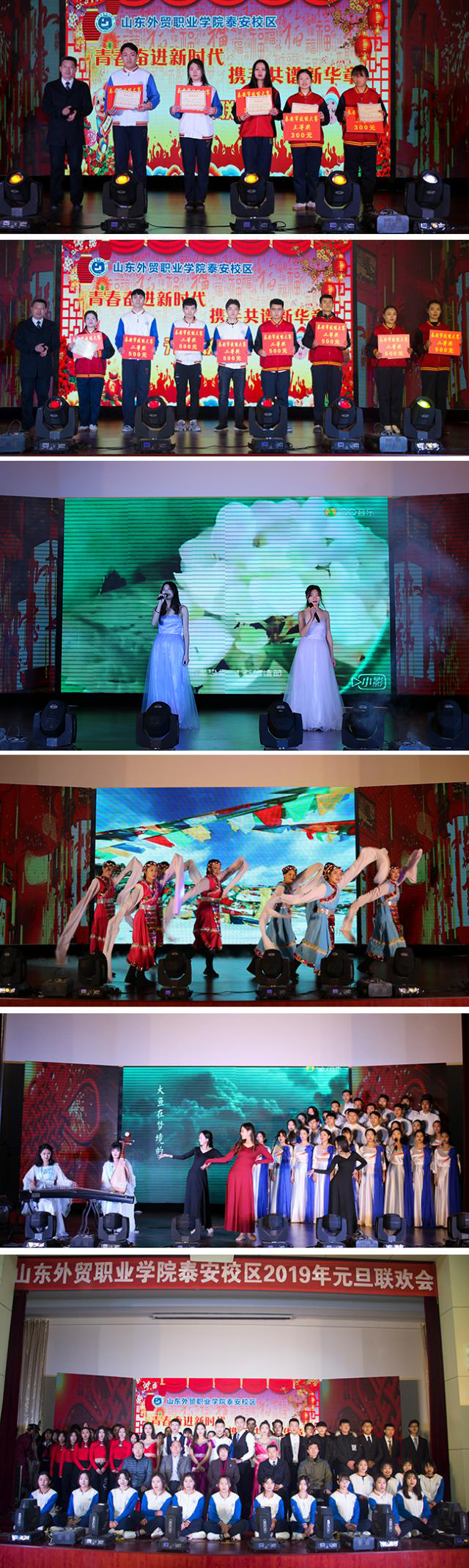 演出开始前,首先对泰安市技能大赛、校区托盘接力技能大赛和会计技能大赛获奖选手、冬季越野赛获得团体奖的班级进行了表彰,校区管委会副主任白珣为获奖同学颁奖。