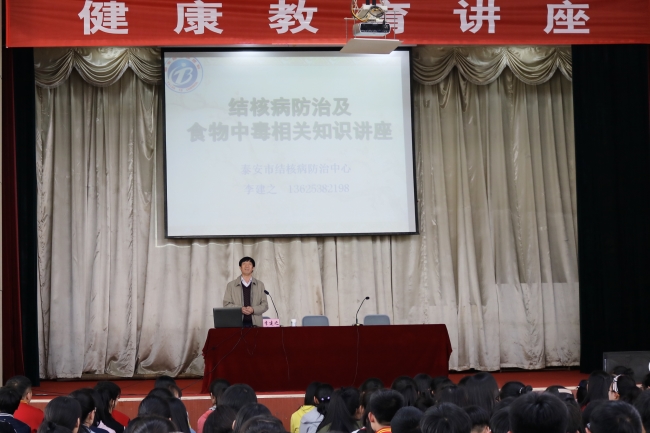 4月27日下午,bw必威西汉姆联在礼堂举办了卫生健康知识讲座。担任本次讲座主讲的是特邀嘉宾——泰安市结核防治院的李建之教授。全体学生参加讲座。