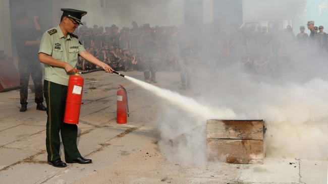 为加强校区安全宣传与教育,9月12日,校区后勤服务中心聘请岱岳区公安消防大队干警来校开展消防安全培训活动。2017级全体新生参加活动并现场观看并进行灭火演练,取得良好效果。同时参加演练的还有宿舍管理人员和物业保安人员。