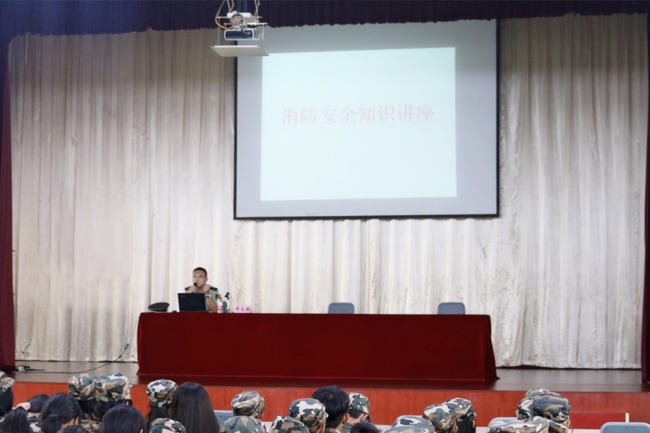 为在2018级新生中普及消防安全知识,提高预防火灾和火场自救能力,2018年9月10日,校区安全保卫科邀请岱岳区消防大队师文超参谋在校区大礼堂为2018级新生举办消防安全知识讲座。