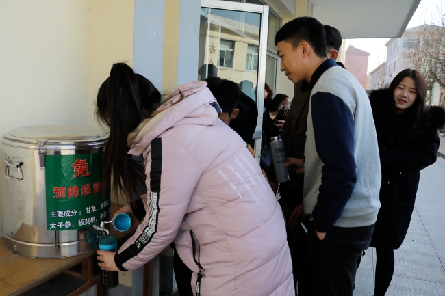 经校区传染病防控工作领导小组研究决定,自12月25日至29日止,后勤服务中心卫生室为全校师生免费提供防流感中药汤。该汤剂主要由金银花、板蓝根、冬麦、甘草等十多味中药泡制而成。供应地点设在教学楼前,时间为每日早8点至下午5点。